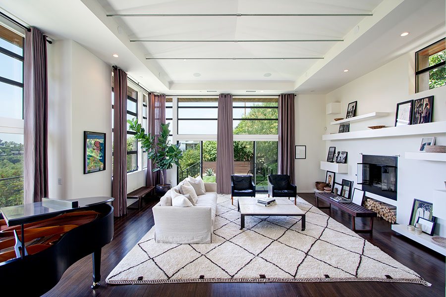 The walls are always white and there are no books, not a single one, anywhere, except if they are on the coffee table, and then they are photography books, and they sit in front of the 86″ Class (85.6″ Diag.) 4K Ultra HD LED LCD TV: $6,999.