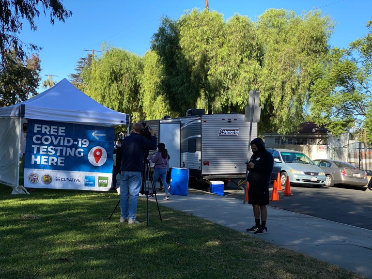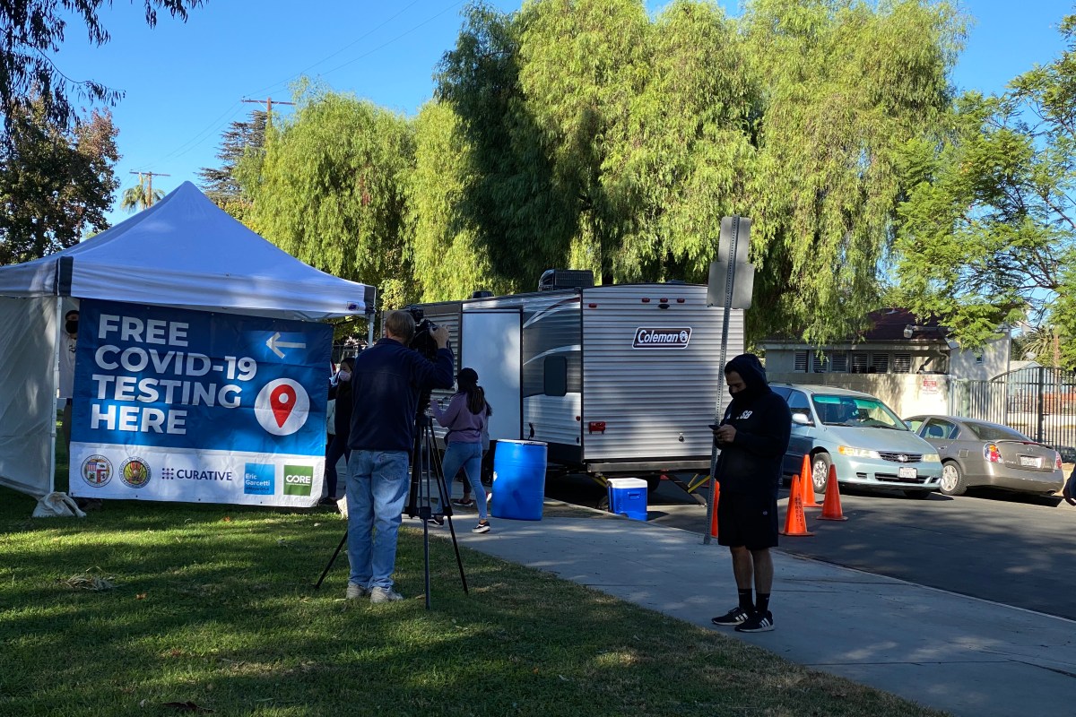 We went up to Vanowen, and then back down and we parked along Kittridge and saw a CBS-TV van filming another line of people outside of a tent. Was this the Covid-19 test line?