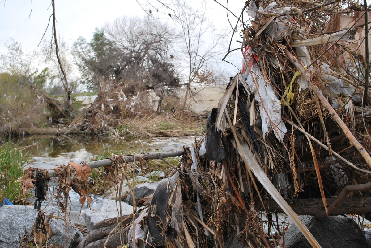 Riding my bike around the Sepulveda Basin today, I was startled and sickened to see a river lined with trash.