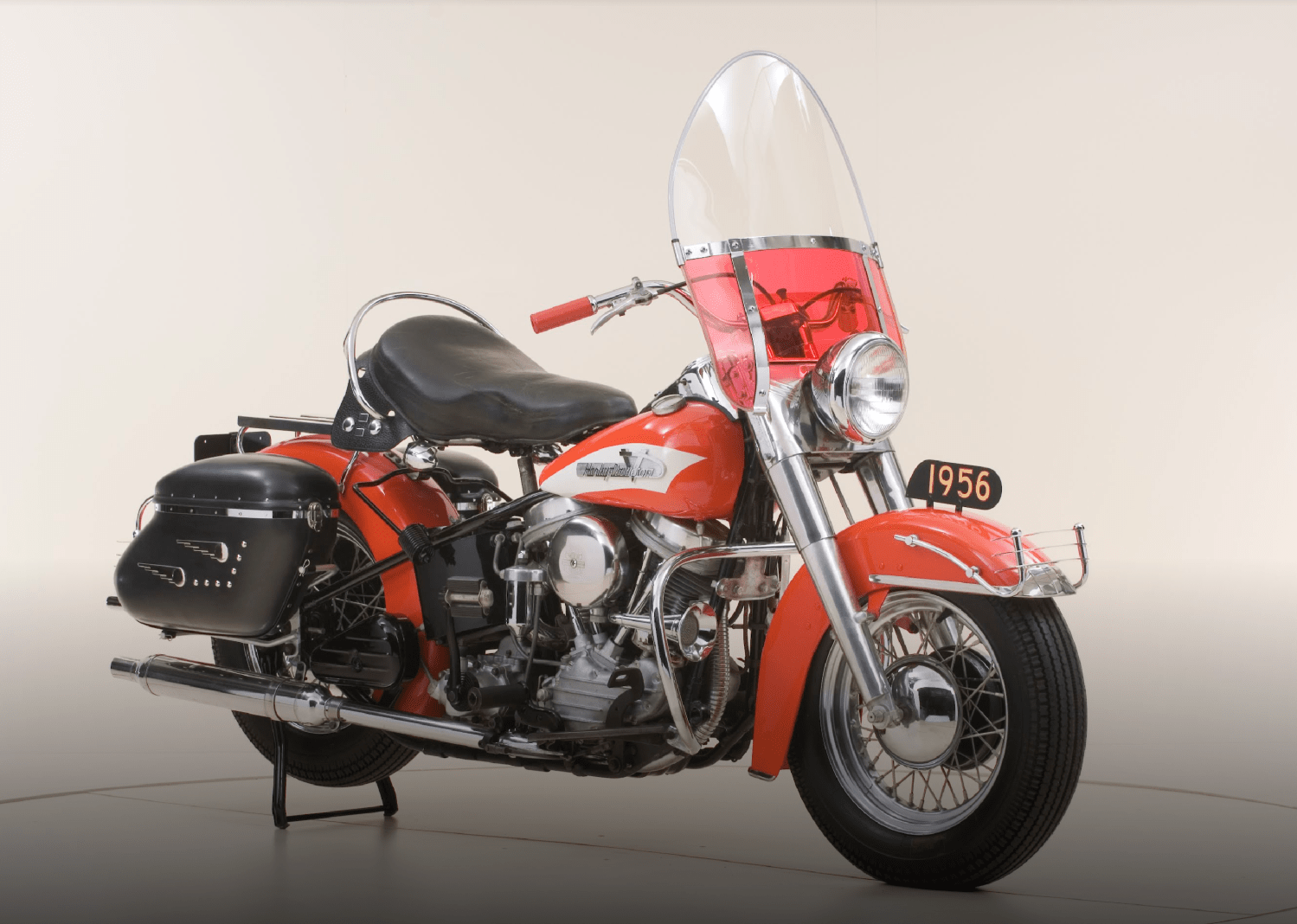 Harley-Davidsons became ever fancier in 1956 with the introduction of luggage racks, saddlebags, windshield and a tandem seat which increased sales and expanded the consumers to include traveling families like the Dondelingers.