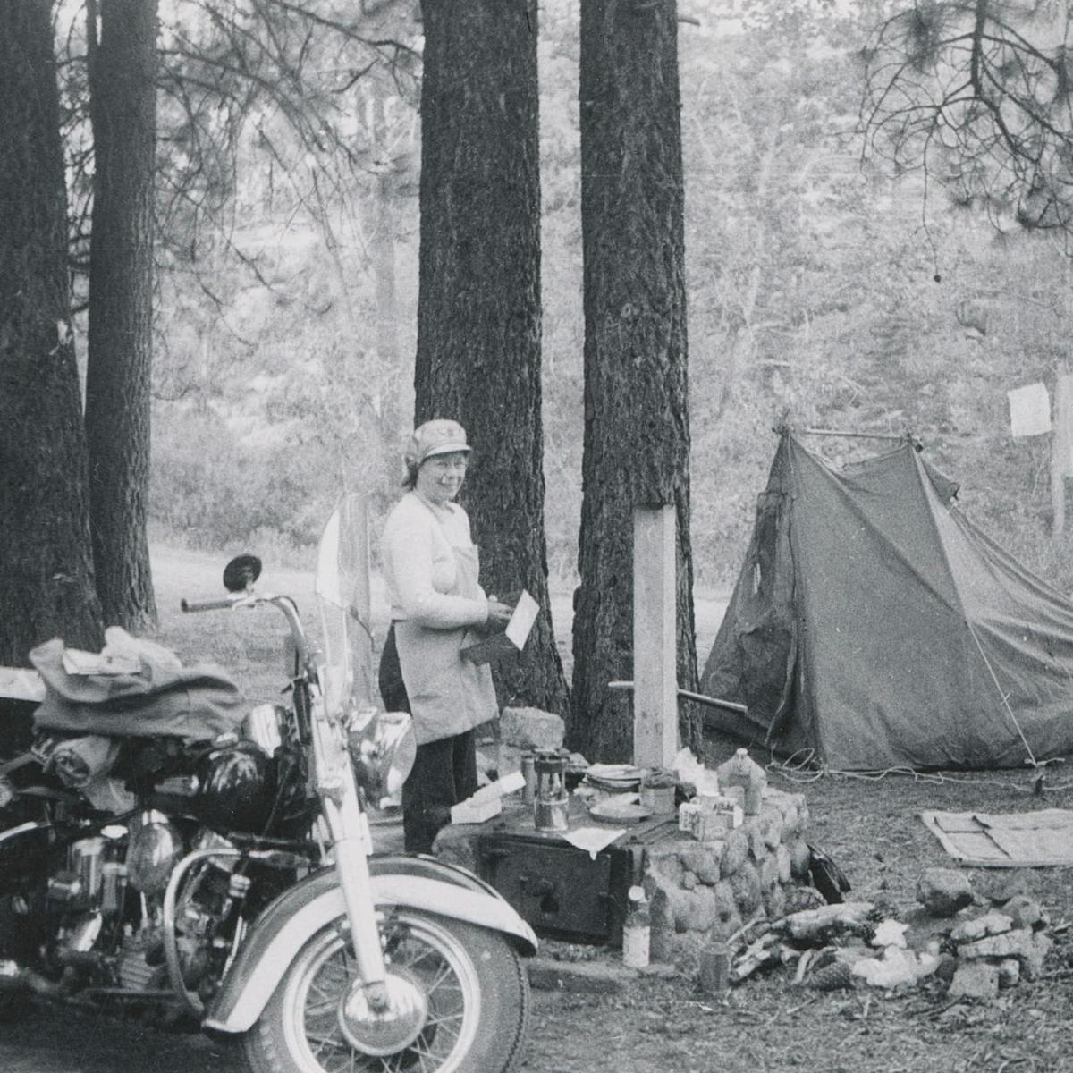 Leaving from Van Nuys, they packed their Hydra-Glide with a pup tent, air mattresses, sleeping bag, stove, white gas, dishes, food and clothing. She wrote about visiting their children and grandchildren, camping sites, scenic roads, and some of “the different expressions with which we were regarded by other tourists as we rode down the highway. Some looked at us in amazement, some in disbelief and occasionally in envy.”