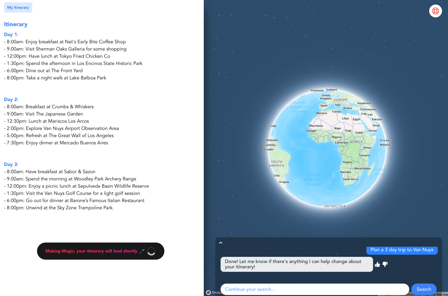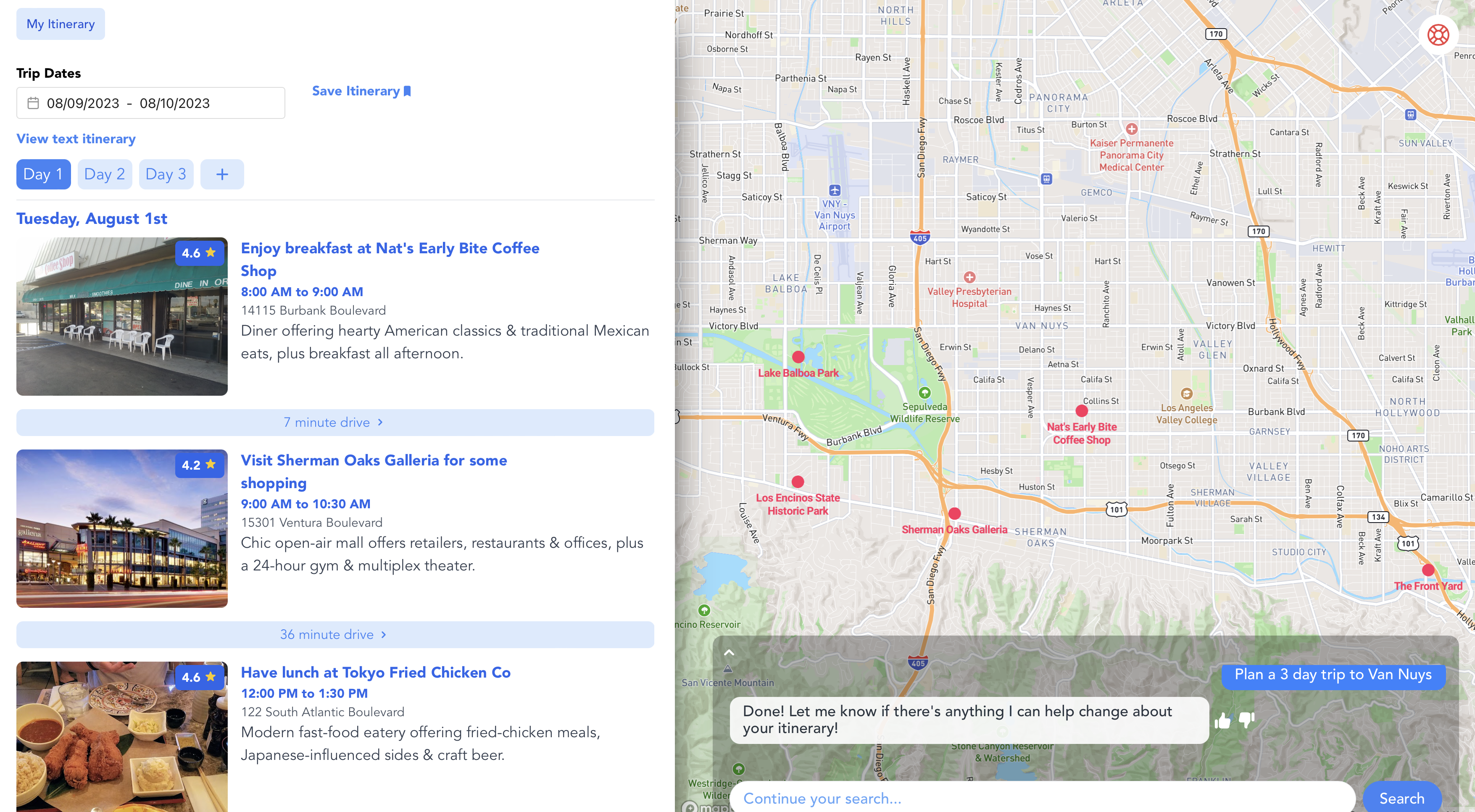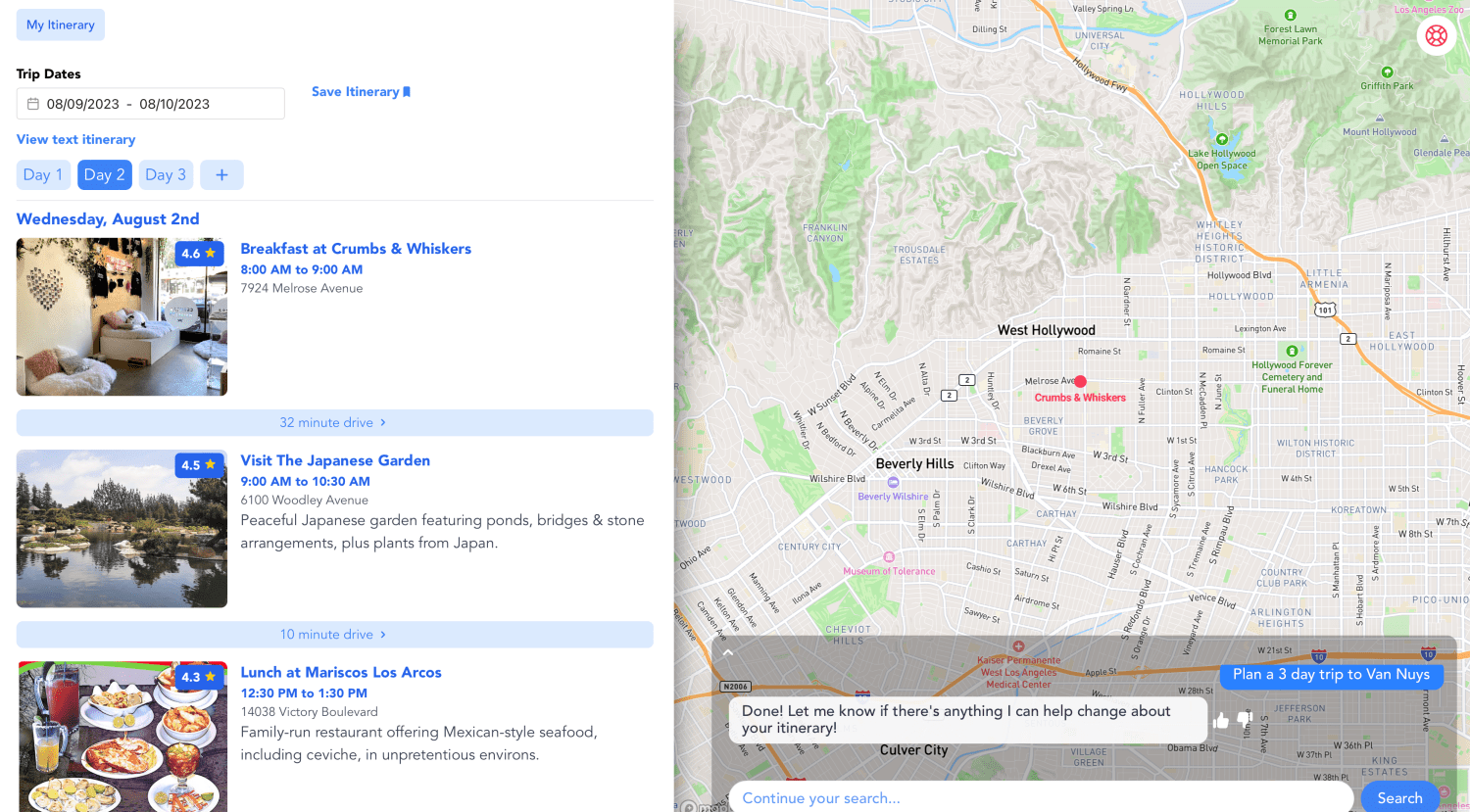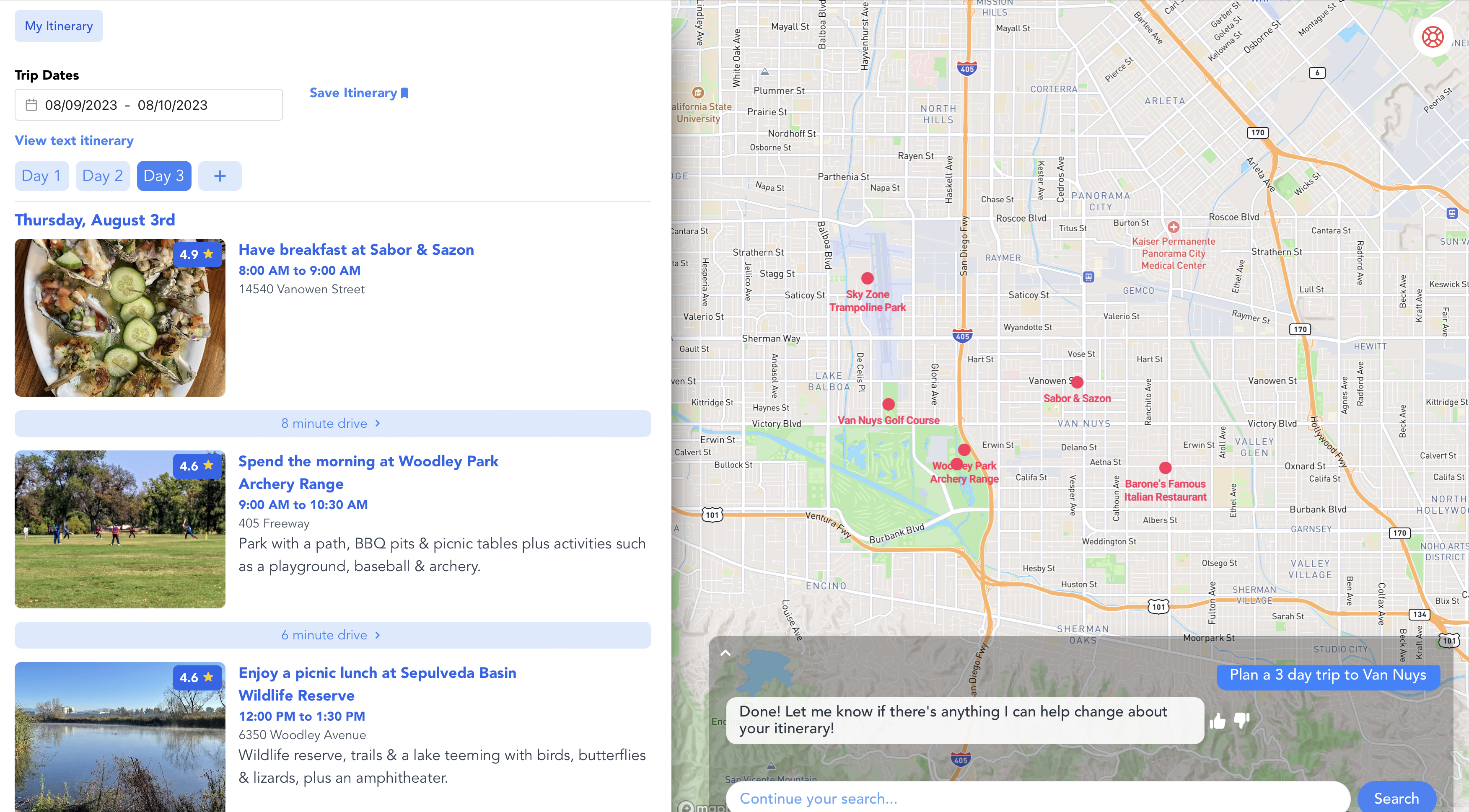Magictravel is artificial intelligence for travel planning. I asked it to come up with a three-day itinerary for a visit to Van Nuys, and it supplied me with a refreshing, cynicism free, daily calendar of events.