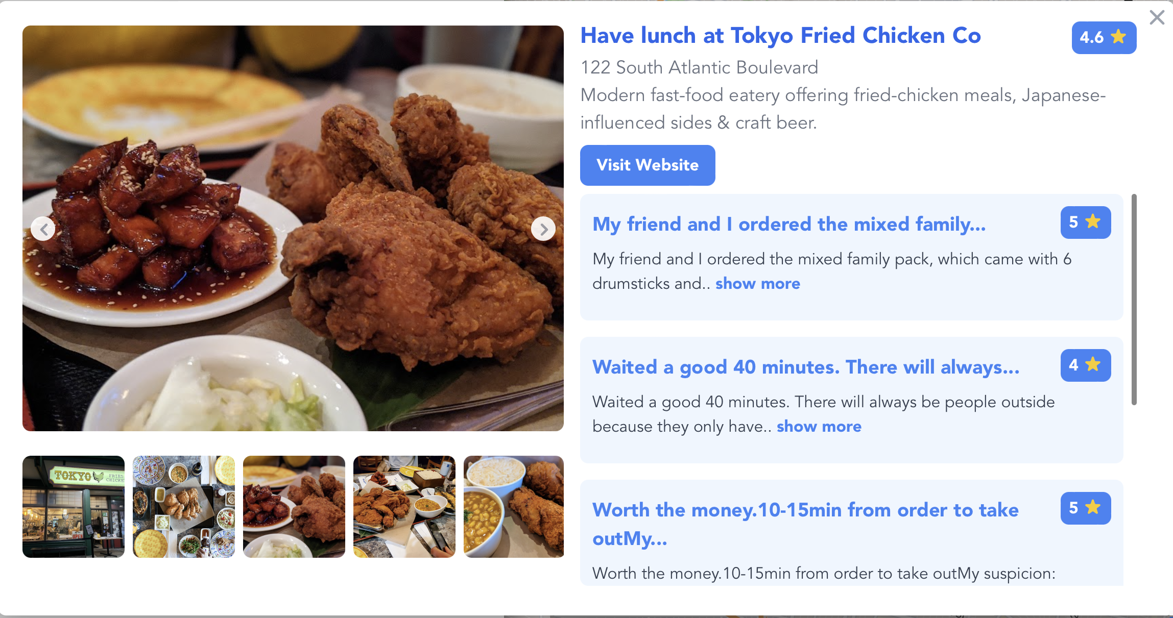 Magictravel.ai does not suggest post-breakfast activities near this restaurant, such as walking around Melrose, visiting Farmers’ Market, exploring Hollywood, LACMA or the Petersen Automotive Museum.