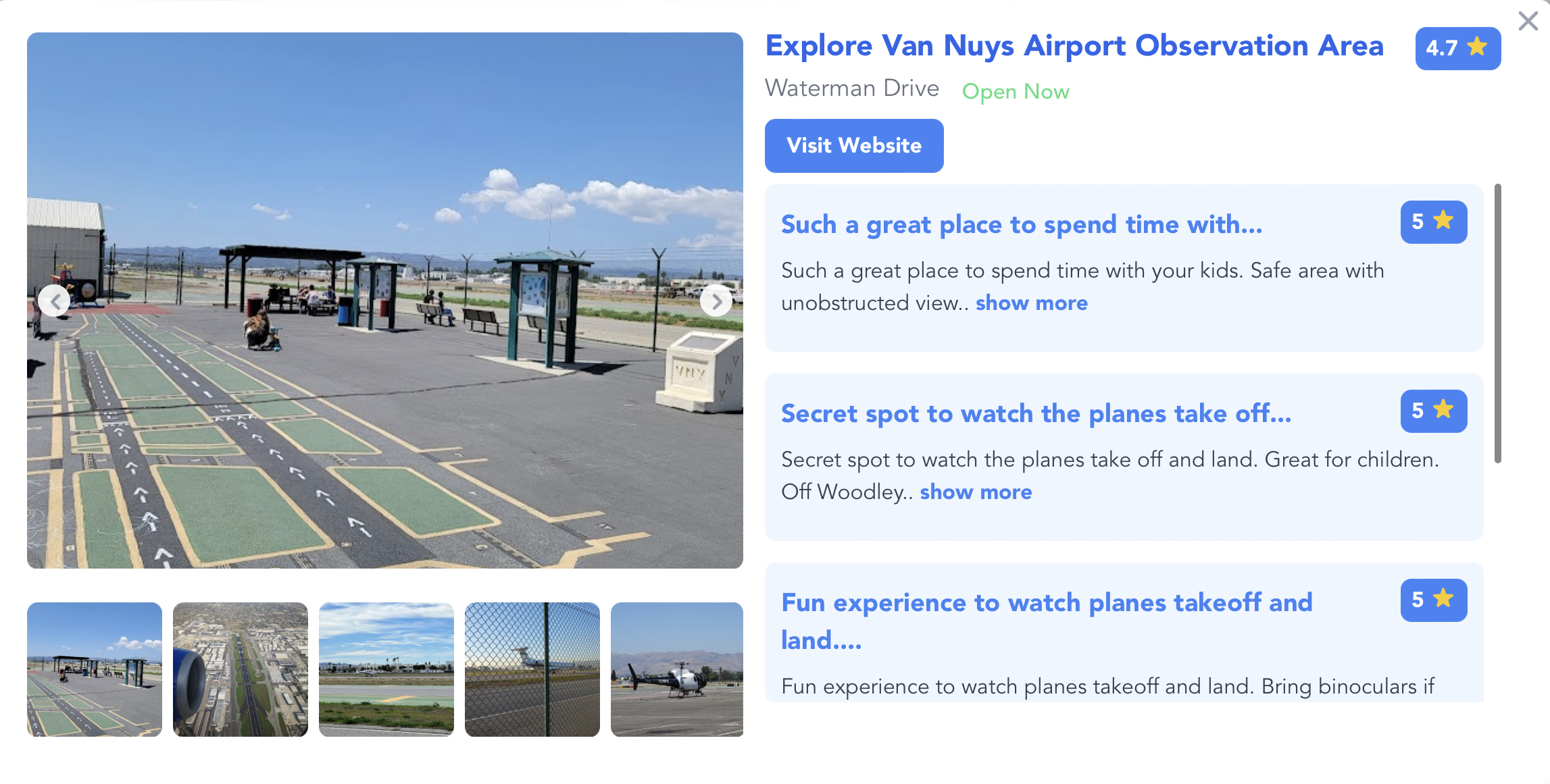 After eating I’m anxious to get going to arrive at my next destination which is the Van Nuys Airport Observation area on Waterman Avenue, just west of Woodley and south of Roscoe. Yet another activity which takes place on hot asphalt, this is a delightful suggestion in the 100-degree heat. 2-3:30pm