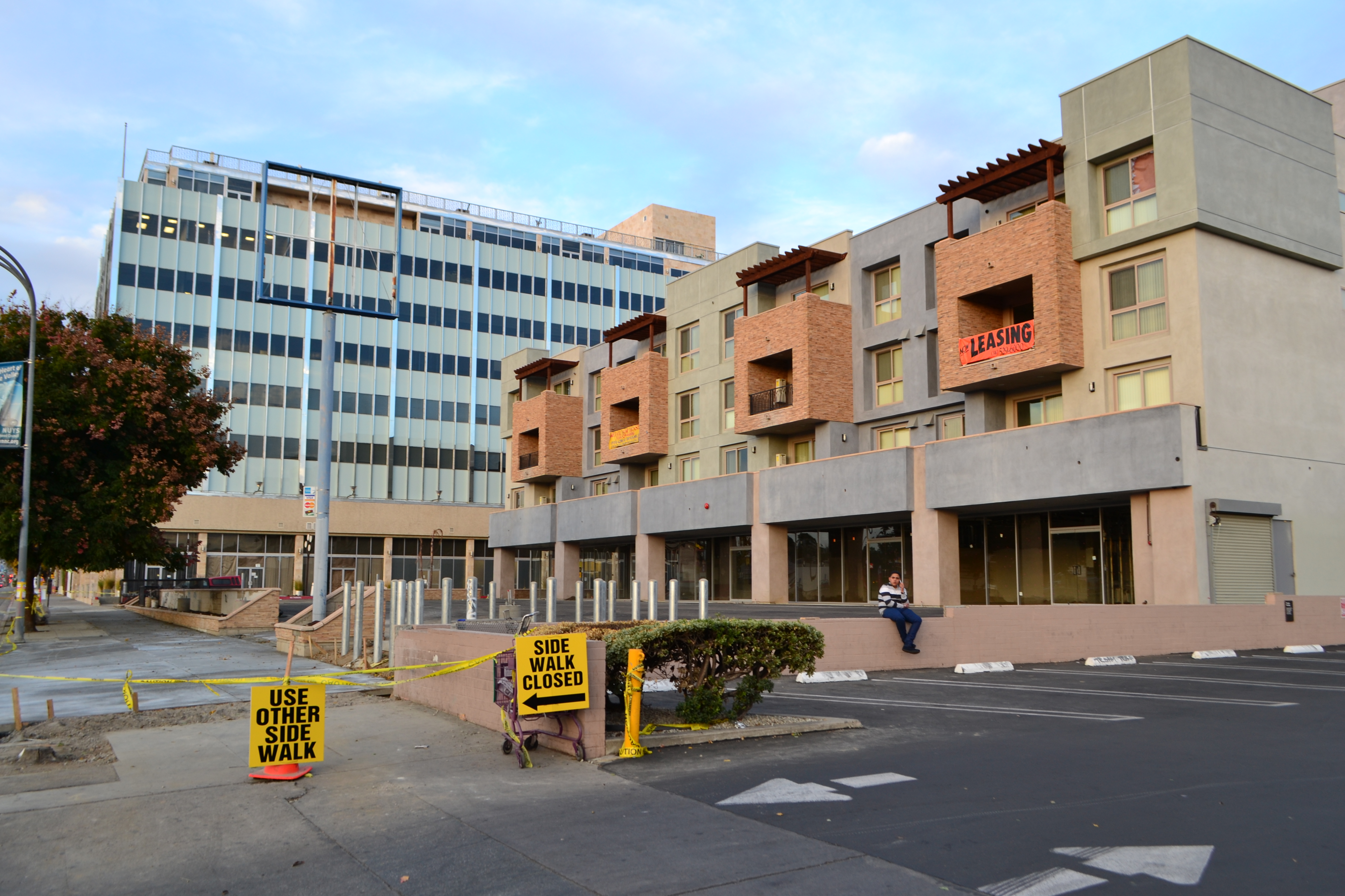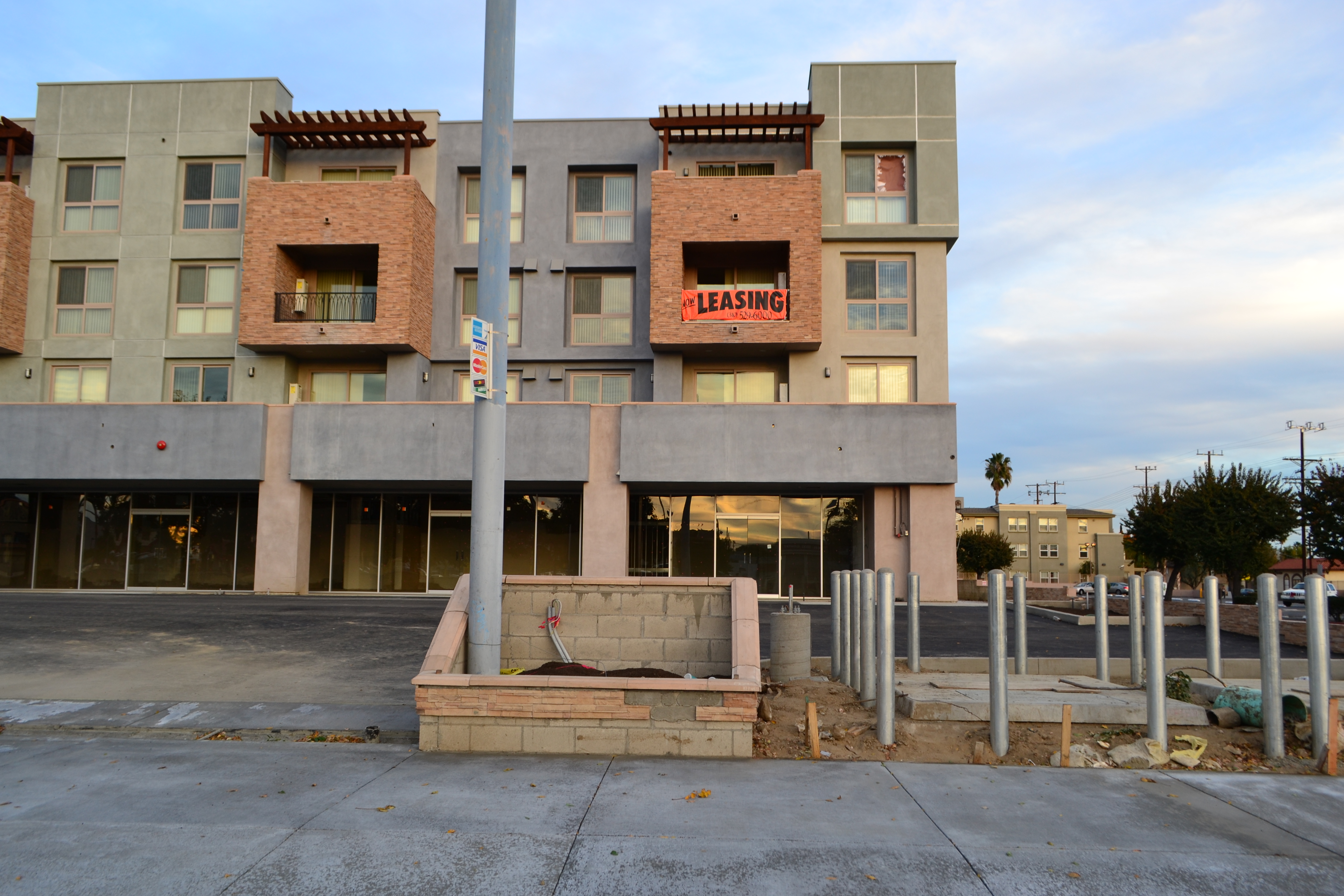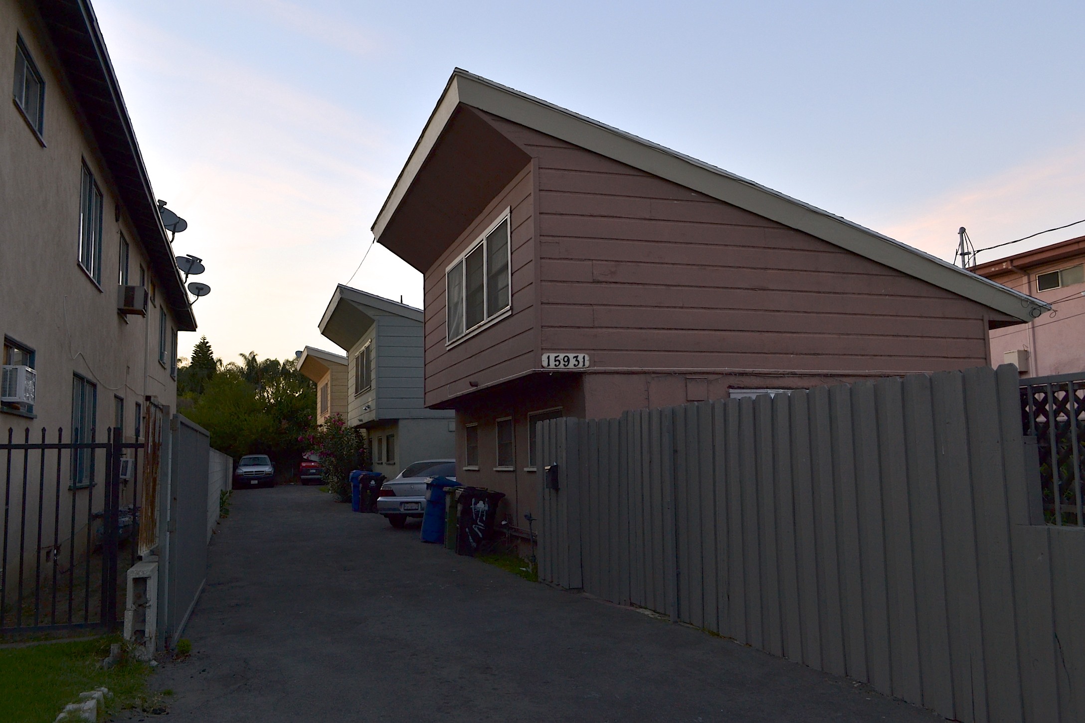 Up at 15549 Sherman Way, Helen Towers (built 1972) is a large, 93-unit apartment building with a pool and lots of parking set on an acre and a half property right next to the on-ramp for the Northbound 405. Strangely bucolic, it seems well kept, if a bit dated.