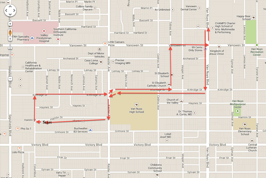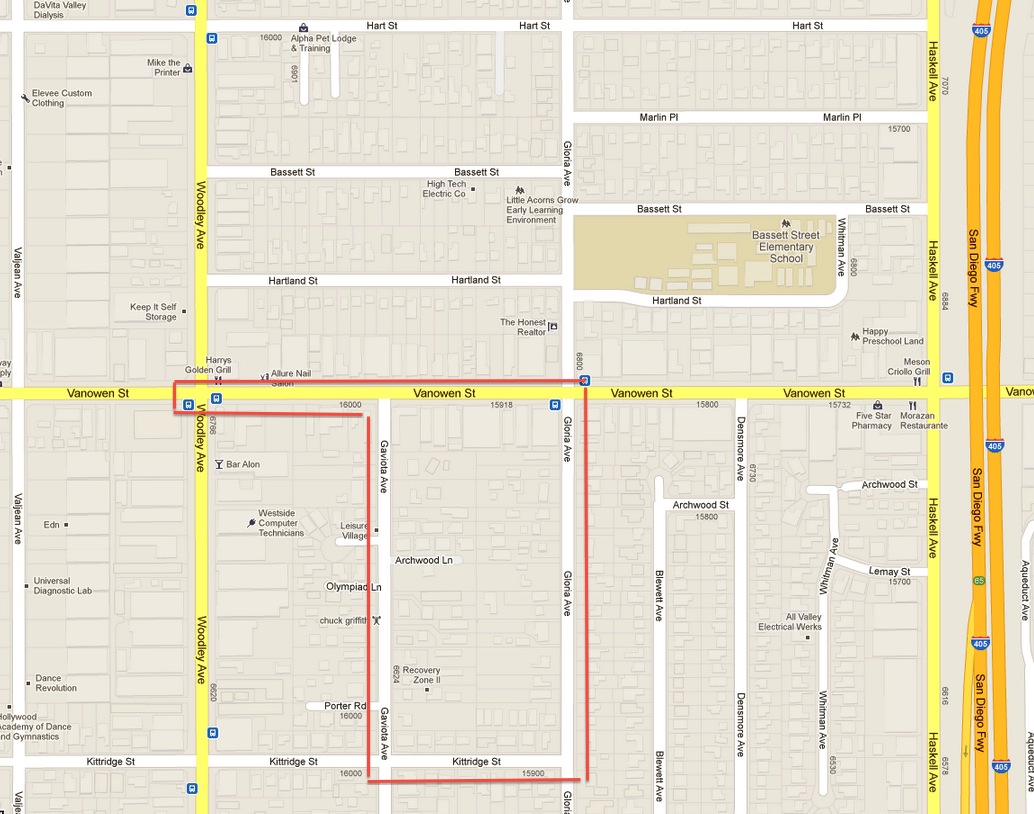 I walked in the wind up Sepulveda, north of Vanowen, and went left along Hart Street.