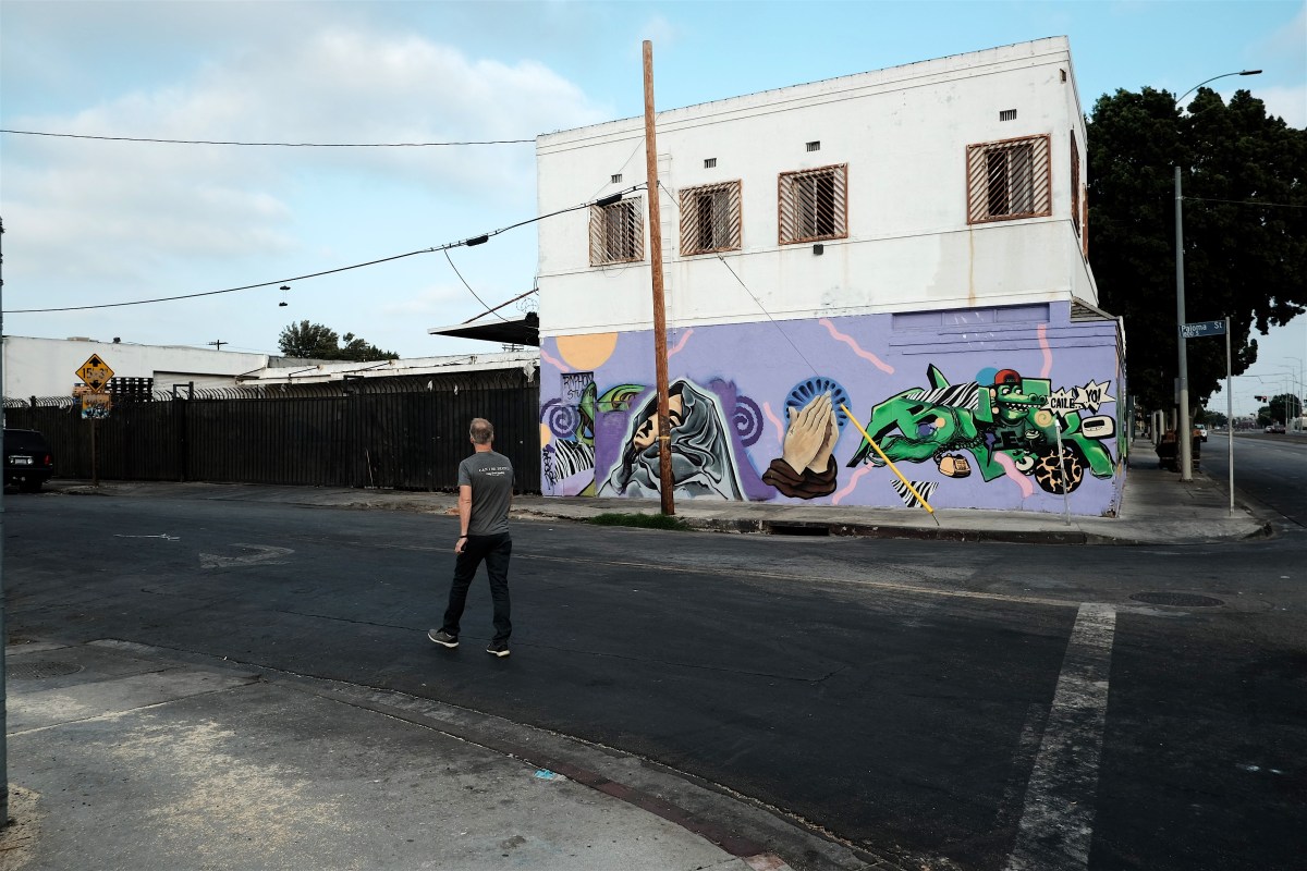 There are fine murals on buildings, and most of the alleys we walked past were shabby but kept free of debris, cleaner, in fact, than some in Van Nuys.
